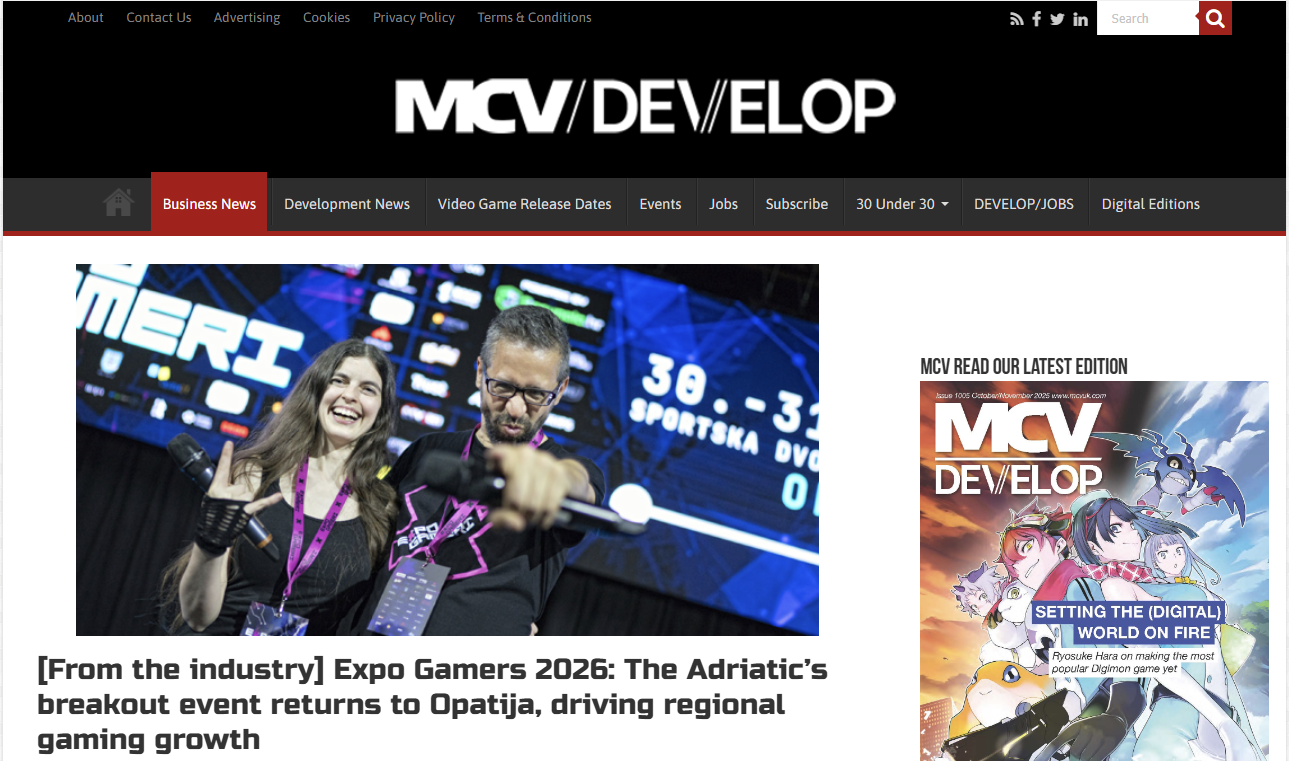 The first official announcement of Expo Gamers is published at MCV/DEVELOP: the leading UK business-to-business media outlet for the entire video game industry, focusing on the commercial, development, and retail sectors. See the full article here: https://mcvuk.com/business-news/from-the-industry-expo-gamers-2026-the-adriatics-breakout-event-returns-to-opatija-driving-regional-gaming-growth/